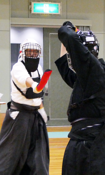 現在はヘッドギアとグローブをつけてウレタンの剣を使って試合を行っています。