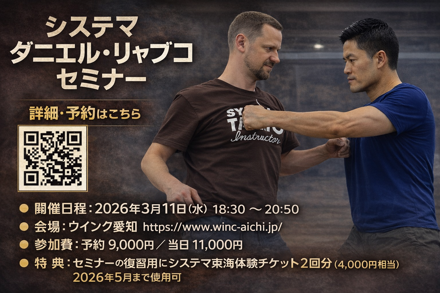 システマ創始者ミカエル・リャブコの系譜を継ぐヤングマスター、ダニエル・リャブコが名古屋にて再び指導を行います。
