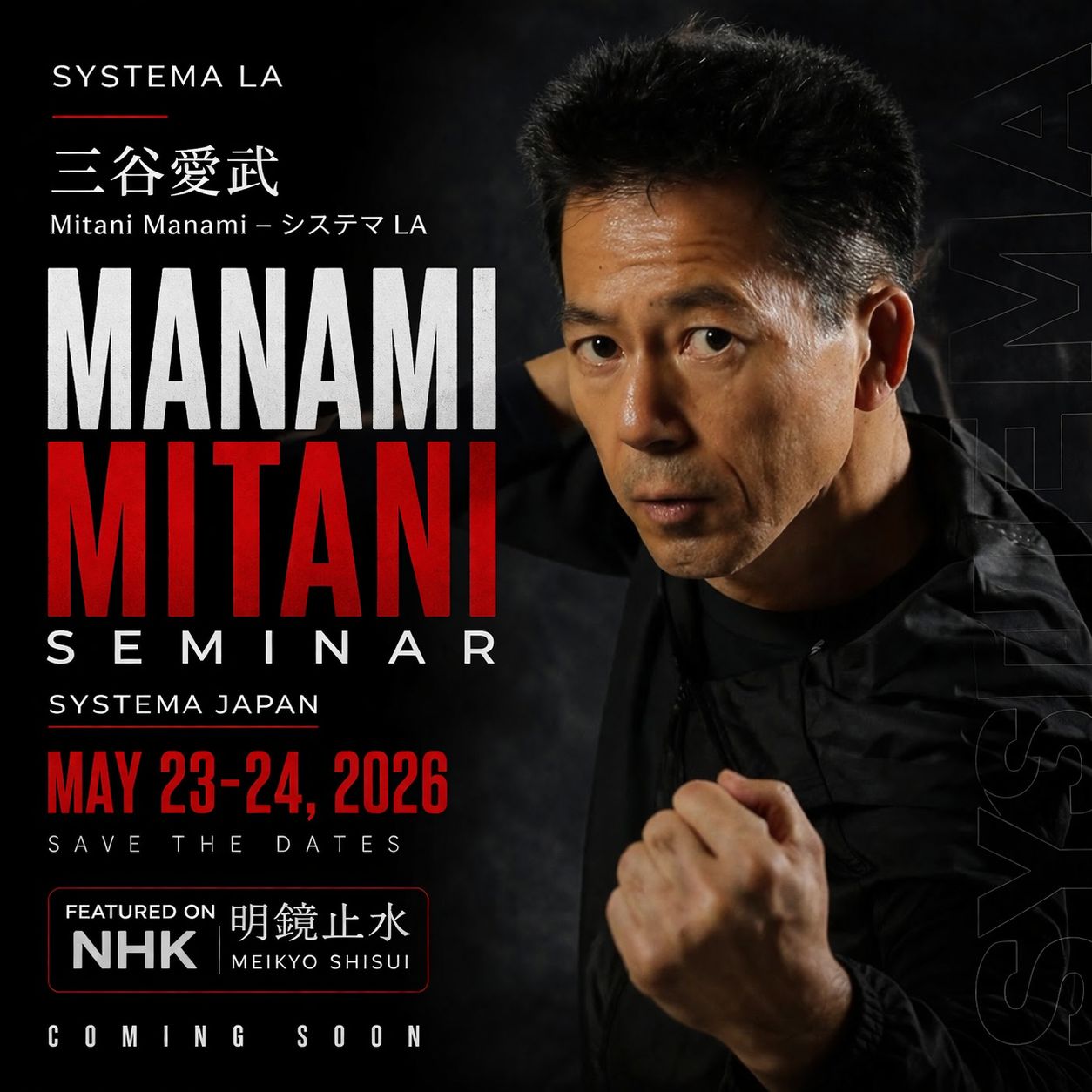 今年1月、NHK武術トークバラエティ番組『明鏡止水』システマ出演で話題となったシステマロサンゼルス代表・三谷愛武による2DAYS特別セミナーを日本初のシステマ公式スクール『システマジャパン』にて開催!!