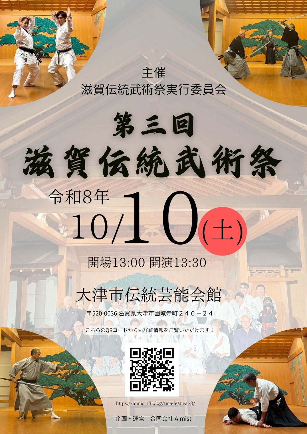 また、歴史深い滋賀の地、そして日本文化を象徴する能楽堂という舞台での演武は、武術の美しさを際立たせると同時に、日本文化の魅力を国内外へ発信する大きな機会になると考えております。