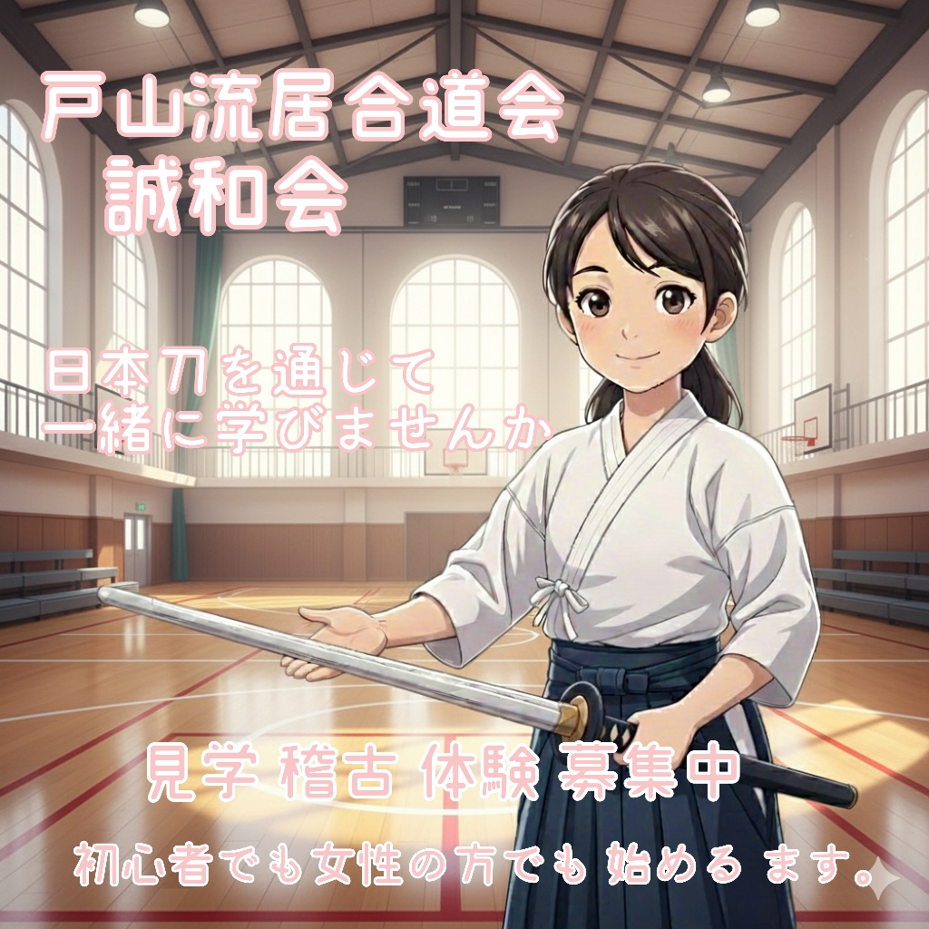 目に止めていただきありがとうございます。 誠和会は、戸山流居合を稽古しています。 年齢 性別 経験 未経験 関係なく 頑張りたいと思いっきり [...]