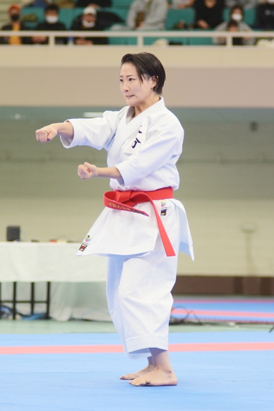 全日本空手道連盟(全空連)が主催する「全日本空手道選手権大会」には多くの流会派の選手が参加する。写真は、2022年12月に開催された第49回大会の女子形個人において優勝した大野ひかる選手の「スーパーリンペイ」の演武。