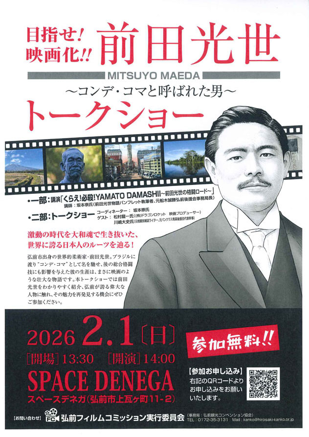 また「弘前フィルムコミッション実行委員会」は、本年2月1日(日)に下記の通り、前田光世に関するトークショーの開催も予定している。