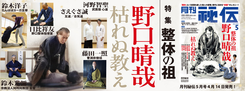 野口晴哉師。その教えは時を超え、今もなお枯れることはありません。本特集では、武術・治療・禅・ヨーガなど、現在様々なジャンルの第一線で活躍している身体のプロフェッショナルたちが語る、野口整体との出会いから得た大いなる学びを通じ、彼らの中に生き続ける、野口晴哉という偉大なる稀人のレガシーに迫りました!