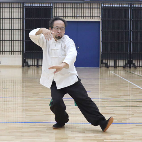 岡部武央師範主催「第二回総合武道交流演武大会」(2021年)にて、九十九式太極拳を演武する遠山師