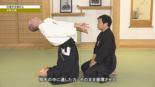 さらに手の合気で攻め続けると、こちらが手を外しても、手の合気の力が相手の中で循環し、固まってしばらく動けない状態になります。これが合気之術のひとつです。